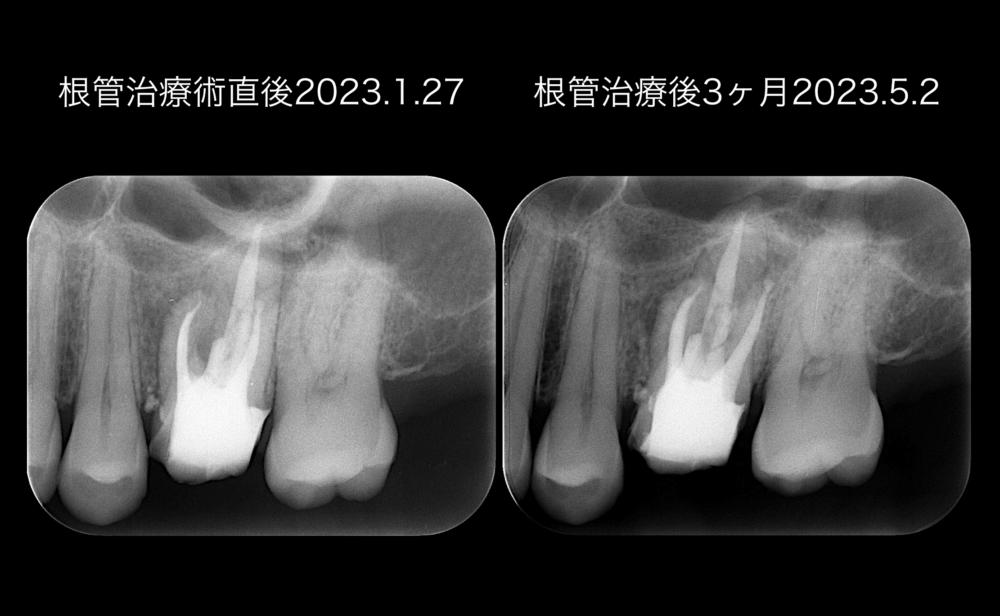 前回と今回のケースは、ポケットが浅く、サイナストラクトがある根尖性歯周炎で、根管治療により治癒しました。